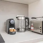 K dispozici je místnost na posezení, televize a TV s plochou obrazovkou se satelitními kanály, plus kompletní kuchyně, vybavené rychlovarnou konvicí, chladničkou a toustovačem. V tomto apartmánu jsou k dispozici samostatná toaleta, vana a sprcha.